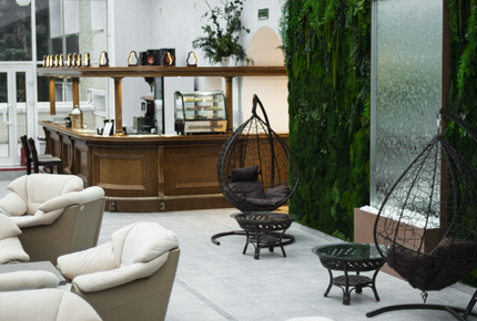 Комфортабельные номера, уникальный медицинский центр, банкетный зал, бар, SPA-центр с бассейном, фитнес-центр, банный комплекс, кинотеатр.